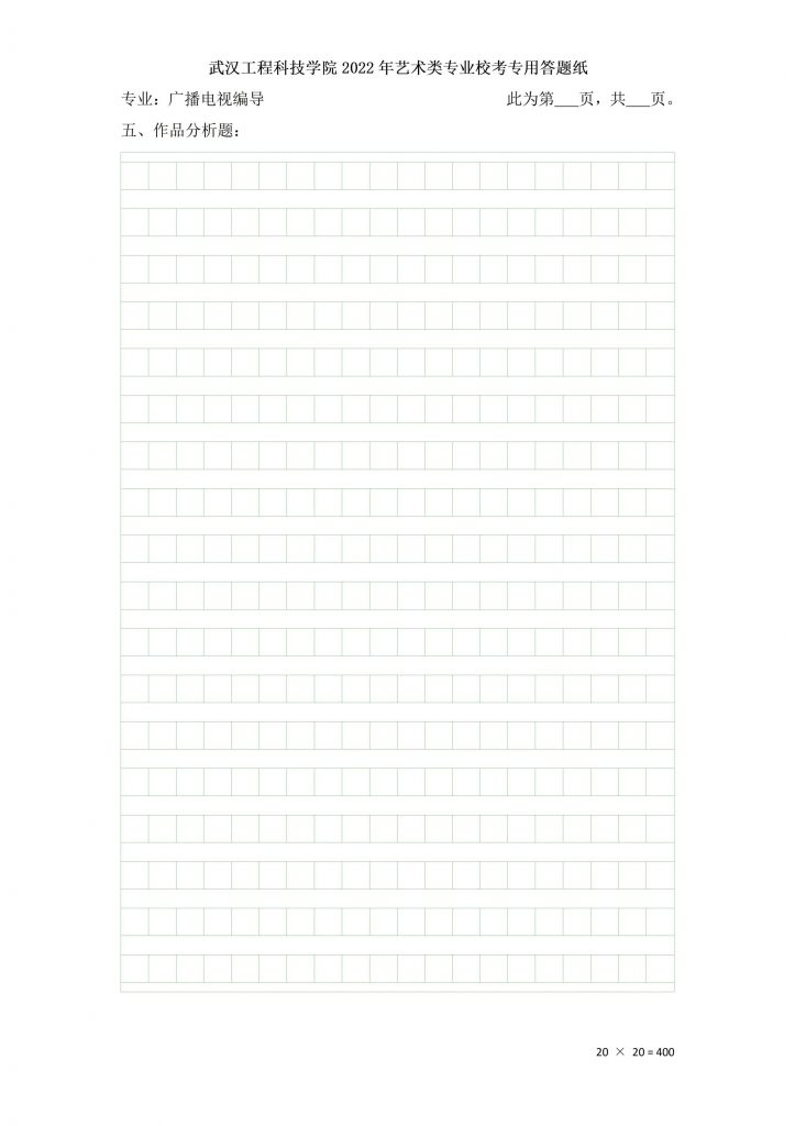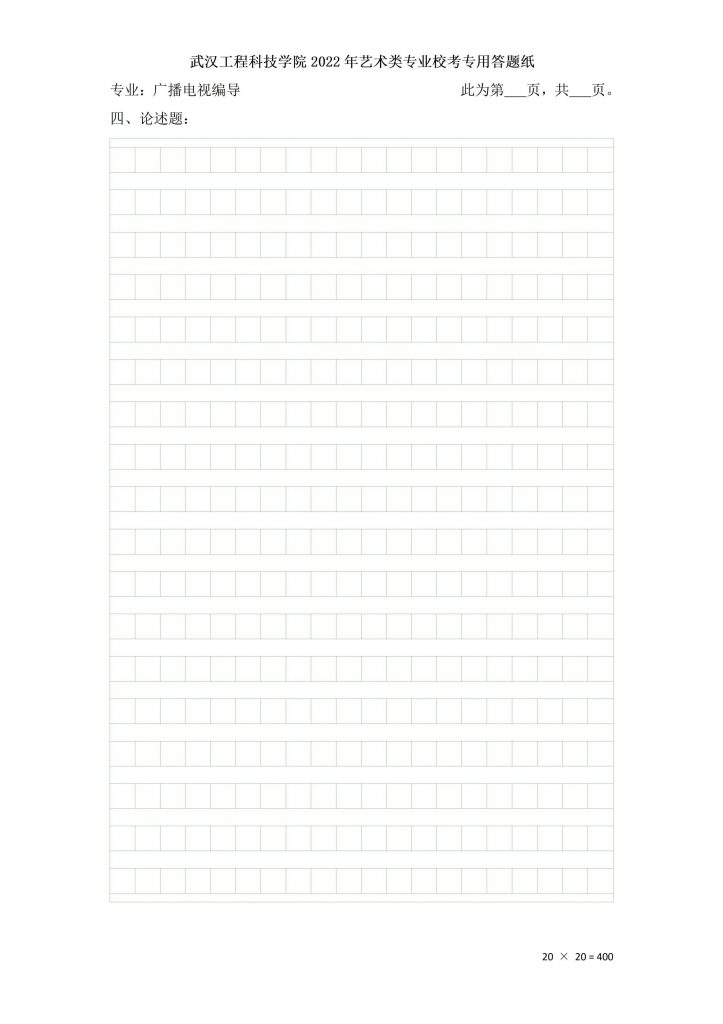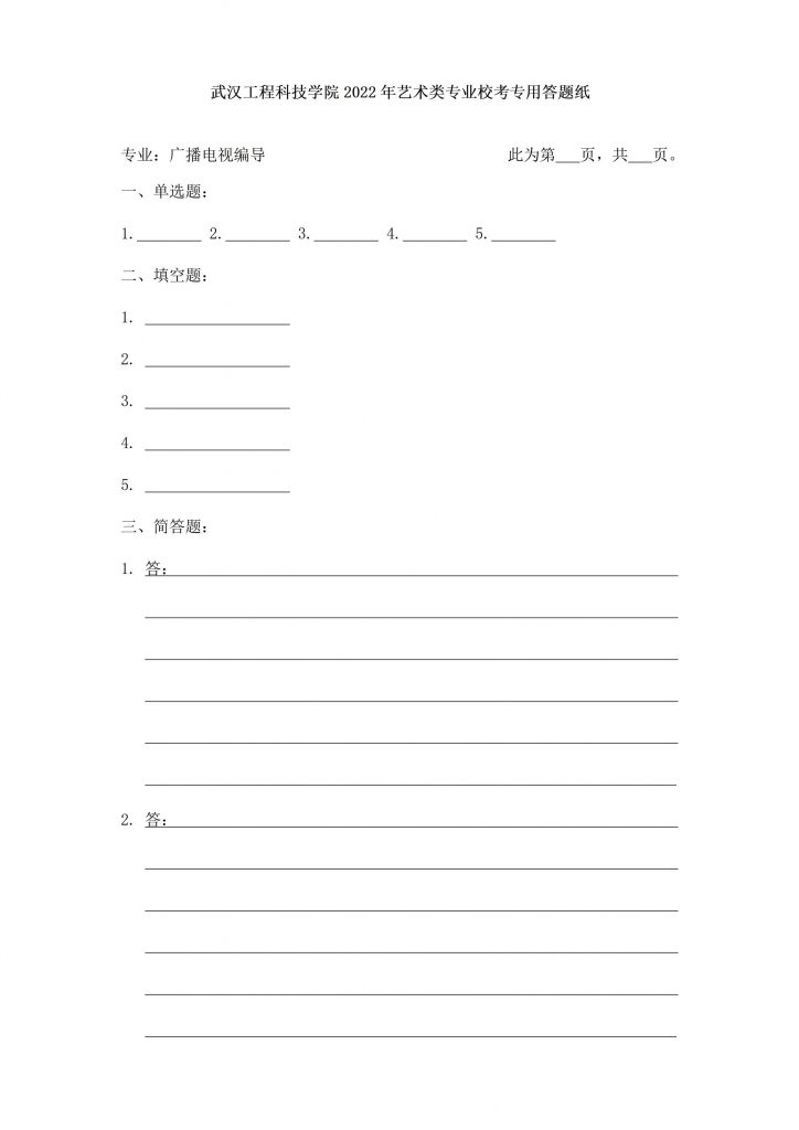 2022年武汉工程科技学院艺术类校考专业——广播电视编导答题纸下载